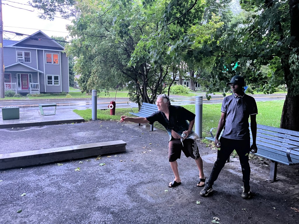 Playing in the rain is quite the fun way to play Petanques! Check this out with Yonas, Christine and John.